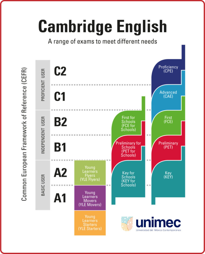Son pruebas diseñadas por la Universidad de Cambridge (Reino Unido), reconocidas a nivel mundial, que evalúan las habilidades de inglés en contextos reales. Son una forma concreta de saber qué tanto comprende, escribe, lee y habla en inglés tu hijo.